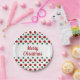 Plato De Papel Feliz Navidad Cute puntos de Polka Blanco Rojo