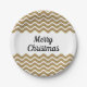Plato De Papel Feliz Navidad Faux Gold Purpurina Rayas Blancas