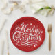 Estos clásicos platos de papel de Navidades rojos y blancos le desean a todos una "Feliz Navidad" en un divertido pero tradicional guión con elegantes florecientes estacionales.
