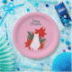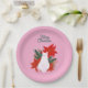 Feliz Navidad Floral Cat platos de papel con un lindo gato y flores de temporada.