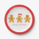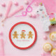 Ilustracion lindo de tres hombres de jengibre vestidos con ropa de fiesta. Sombrero de Papá Noel, pañuelos de invierno y bonitos botones de colores alegran las vacaciones en este diseño. Los hombres de pan de jengibre son esenciales para la temporada de Navidades y este diseño es perfecto para alegrar esta temporada.