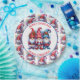 Cuidada acuarela capomes de invierno en placas de papel fiesta de Navidades rojos y azules.