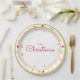Platos de papel simples pero en temporada para sus Fiestas Navidades. El plato está decorado con colores dorados y rojos, lo que hace que cualquiera sienta el espíritu de los Navidades y del amor. El color blanco dominante significa paz. Una muy linda viña/hojas en oro circula el plato, que va muy bien con el borde dorado del plato, y una "Feliz Navidad" saluda a tus invitados mientras reciben la comida que compartiste con ellos. ¿A quién no le gusta la combinación oro-rojo-blanco?