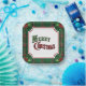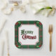 Un hermoso plato de papel para Navidades con un estilo vintage "Feliz Navidad" y un Navidad con un borde de manto verde con acentos sagrados. Ideal para comidas de vacaciones en restaurantes o para comidas de barroom.