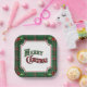 Plato De Papel Feliz Navidad Green Plaid con Holly