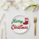 Placas de papel con esta camisa con Feliz Navidad en texto verde y rojo en 3D y un Navidad abasteciéndose. Placas disponibles en varios tamaños.