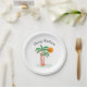 Estos platos de papel de estilo isleño cuentan con palmeras dibujadas a mano decoradas con luces y un sol. Dicen Feliz Navidad pero puedes cambiar las palabras si lo deseas. Porque creamos nuestra propia obra de arte no encontrarás esta imagen exacta de otros diseñadores. Acuarela original © Michele Davies.