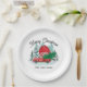Plato De Papel Feliz Navidad Rústico Camión Rojo Castillo Blanco