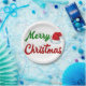 Placas de papel con Feliz Navidad en letras verdes y rojas 3D y un gorra de Santa Claus. Placas disponibles en varios tamaños.