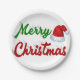 Plato De Papel Feliz Navidad Santa Hat rojo green script