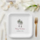 Feliz plato de papel navideño, con palmeras botánicas y ilustracion de luces de cuerda. Con letras de tipografía de personalizable, añades tu propia información. Una adición tropical a tu fiesta de vacaciones inspirada en la playa.