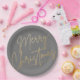 Plato De Papel Feliz oro navideño en gris
