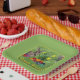 Escena de primavera con #EasterBunnies y #EasterEggs en un prado verde con flores, texto #HappyEaster 👉 Coincidiendo con tazas de papel, servilletas y más artículos con este diseño disponible.