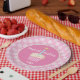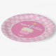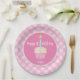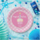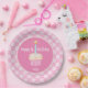 Los platos de primera cumpleaños de tu niñita serán dulces como su torta de cumpleaños con este diseño de quequitos acuarelas. Un quequito rosa pintado a mano con una vela azul es la pieza central de este encantador plato y el borde del tablero de ajedrez le da el toque correcto de brillo para una deliciosa celebración de cumpleaños. Esto es parte de la colección de pasteles de cumpleaños 1, busca invitaciones coordinadas y artículos de fiesta.