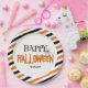 Plato De Papel Feliz Patrón Negro Y Naranja De Halloween