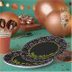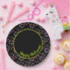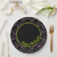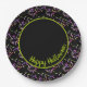 Un diseño delicioso, nuestras Placas de Papel de Personalizable Feliz Halloween Sprinkles Negro y Verde con ilustraciones de rociadas coloridas en vibrantes tonos de naranja, morado, verde, rosa y negro. Estas placas de papel para fiestas de Halloween son la adición perfecta para cualquier fiesta para niños, familias o adultos de Halloween. El texto dice "Feliz Halloween" y se puede personalizar para que coincida con tu celebración especial.