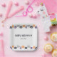 Feliz truco o tratamiento de Halloween, bordeado de calabazas con placas de papel fiesta