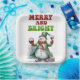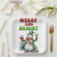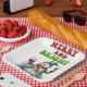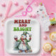 Un divertido y alegre diseño de Navidades exhibe a un muñeco de nieve alegre vestido con un largo abrigo verde con un sombrero superior a juego, bufanda roja y mitones. Él sostiene un vaso de vino tinto en una mano y un vino blanco en la otra. El texto rojo y verde festivo dice: "Feliz y brillante". Este diseño está disponible en una variedad de productos, lo que lo convierte en un regalo perfecto para los amantes del vino.
