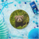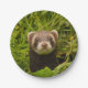 Placa de papel con una adorable fotografía que muestra un pequeño hurón marrón parado en un pasto largo. ¡Cuidado como puede ser!