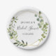 Plato de Papel para Festejo de Despedida de Soltera con Marco Geométrico de Eucalipto Moderno.
