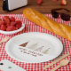El diseño estacional del plato fiesta de papel festivo incluye una elegante exposición de árboles de Navidad nevados en rojo, dorado y rosa sobre un fondo nevado neutro de color beige a rayas ligeras. La parte inferior está cubierta de nieve blanca con "Feliz Navidad" en elegante tipografía clásica. Agregue un nombre personalizado o una línea de texto personalizado en la secuencia de comandos roja coincidente con la plantilla simple de usar. Envíe un mensaje o envíe un correo electrónico a beachpausedesigns@gmail.com para obtener más personalizaciones.