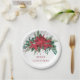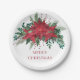 Festividad Floral Rojo Poinsettia Merry Christmas Paper Plates.