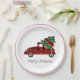 Camión rojo y verde de búfalo envuelto en un camión rojo de antigüedades. Merry Christmas typography. Esto se verá tan dulce en tu mesa de vacaciones con tazas y servilletas a juego.