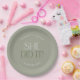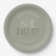 Esta moderna fete green que ella hizo sus placas de papel de graduación son perfectas para un simple fiesta de postgrado. El diseño presenta una elegante tipografía de boho con un toque sofisticado en verde azulado y minimalista. Personalice sus placas de papel con el nombre del año de graduación y clase.