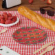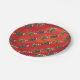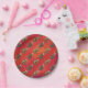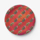 Plato De Papel Fextivo patrón Dino TRex en rojo