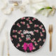 Plato De Papel Fideos de Fiesta de cangrejos (rosado sobre negro)