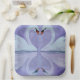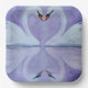 Un hermoso par de cisnes nadan en el lago en tonos violetas. El par de cisnes simboliza una relación de toda la vida. El gráfico se ve bien en placas de papel y varios accesorios bodas.