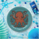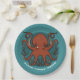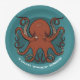 Placas de papel de temática náutica, con un personalizado de pulpo rojo oxidado con un fruncir espumoso medio, tentáculos curvados esparcidos en todas direcciones y suckers de colores carnosos expuestos. Un balde de peces arroja por el fondo. Para los fanáticos de las octopuses y cefalópodos con actitud. Personalice con un sencillo cambio al texto editable que gira alrededor de la imagen. Personalizar para cambiar el color de fondo verde del océano que rodea y se muestra a través de la forma de fondo semitransparente.