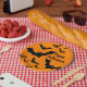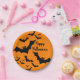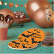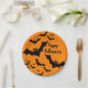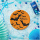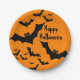 Feliz Halloween y muchos murciélagos decoran este plato de papel.