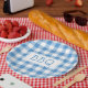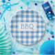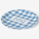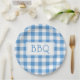 Plato De Papel Fiesta BBQ del patrón de Gingham de azul claro clá