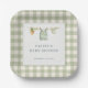 Platos de papel con tema de Gingham para una celebración de baby shower de Producción Local. Diseñados para complementar un tema dulce inspirado en la granja con un toque rústico encantador. Perfecto para mesas de postres, bufets de almuerzo y baby showers con tema de granja. Texto personalizable. Diseño listo para fiesta coordinada.