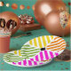 Decorar una fiesta de cumpleaños o un picnic de verano con estos divertidos platos de papel con coloridas franjas geométricas. Este diseño es minimalista y moderno, por lo que se mezclará sin esfuerzo con una variedad de temas y atraerá a personas de todas las edades.