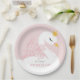 La decoración de una pequeña fiesta de cumpleaños de princesa favorece el plato de papel. Elegante y rosa muchacha linda gama de cumpleaños de los niños cisnes. Impresionante diseño rosa y acuático. Diseño de lirios y almohadillas de lirio.