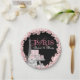 platos de papel de fiesta de cumpleaños 16 dulce paris con hermosa escritura rosa París en un hermoso fondo floral rosa y negro con regalos elegantes rosa y gris y zapatos de tacón alto y Torre Eiffel. Puedes agregar texto para personalizar estos platos de papel de fiesta de cumpleaños de París, y puedes cambiar el color de fondo.