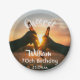 Un plato de papel para una fiesta de cumpleaños número 70 para un hombre. Foto de dos manos sosteniendo botellas de cerveza contra la puesta de sol de la noche. Guarda la foto o agrega la tuya. Con el texto: Saludos, plantillas para un nombre de 70 años y una fecha. Fecha de nacimiento o fecha del fiesta.
