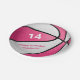 Estas divertidas placas de papel de fiesta de cumpleaños de baloncesto presentan un estilizado gráfico de baloncesto con paneles alternados de color rosa y blanco, en los que se puede personalizar el texto - de katz_d_zynes