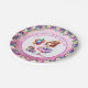 Cuidados platos de papel para la fiesta de cumpleaños de una niña. Ilustracion acuático dulce de una bailarina en un tutu rosa y morado con acentos florales de bonito.