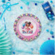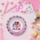 Cuidados platos de papel para la fiesta de cumpleaños de una niña. Ilustracion acuático dulce de una bailarina de color en un tutu rosa con acentos florales de bonito.