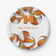 Estas lindas placas de papel de fiesta de cumpleaños con temática de baloncesto son totalmente de personalizable y cuentan con grupos de baloncesto naranja y blanco en los bordes superior e inferior - personalizan con su texto personalizado - por katz_d_zynes