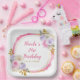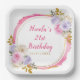 Plato De Papel Fiesta de cumpleaños de flores elegantes rosadas y