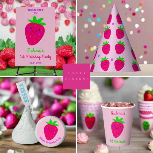 Plato De Papel Fiesta de cumpleaños de fresa rosada