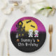 Este plato divertido y espeluznante cuenta con hermosas momias al lado de una casa embrujada. En el fondo hay una luna llena con murciélagos y un cielo nocturno rosa con estrellas. Esto es perfecto para una fiesta de cumpleaños temática de Halloween.