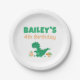 Plato De Papel Fiesta de cumpleaños de los dinosaurios T-Rex verd