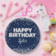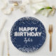Platos de papel de fiesta de cumpleaños azul marino y plata para un fiesta divertido con un moderno estilo clásico con globos purpurina y Relieve metalizado en placas de papel personalizadas.
