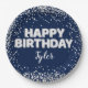 Plato De Papel Fiesta de cumpleaños de Navy Blue Silver