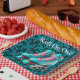 Espero que te guste este fondo verde azulado con damasco negro y patines verde azulados y rosados. Este conjunto de colecciones ofrece invitaciones y suministros para fiestas que coincidan.